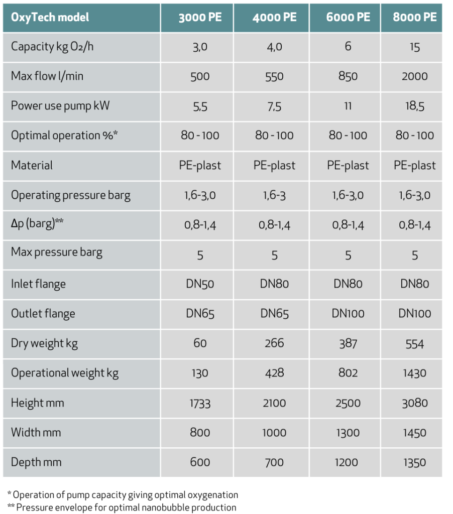 OxyTech genererer skyer av nanobobler som følger vannstrømmen gjennom kar og teknisk utstyr. Nanoboblene holder seg suspendert i vannet og beveger seg med hydraulikken i karet mot senteravløpet. Dette gir økt tilgjengelighet av oksygen over tid, også i områder der tradisjonell oksygenering har begrenset effekt.